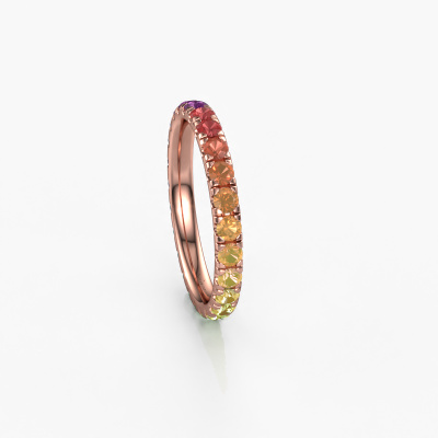 This is our Jackie 2.3 ring. This specific type is called an eternity ring and it is set with a continuous line of identically cut gemstones. The ring is made in 14 Carat rose gold and is set with small Rainbow sapphire 1, 2.3 mm. The amazing Rainbow sapphire 1 are identical in size and are set in the ring band. Our Rainbow sapphire 1 are selected with great care so they are identical, which gives the best result. In order to get the best result, our artisans position all Rainbow sapphire 1 by hand with the utmost care. Our Goldsmiths have one ambition, which is creating the perfect ring. That is why we love what we do. In the end you get a stunning modern rose gold ring with a row of Rainbow sapphire 1 which seem to have no beginning nor end. The perfect symbol of your undying love for her! How special is that!Are you on a budget? Please feel free to contact us, so we can go discuss your options. We offer our rings at guaranteed best price, because we make them to order. You won't find such a price anywhere else!Our team of talented, passionate designers add new ring designs to our online collection daily. Our objective in doing so, is to be able to offer you a wide variety of jewels. Please feel free to request a quote if you have specific wishes for your ring. We guarantee to make you an offer you can't refuse.To make it easier for you, we offer a 30 day return policy. Check our terms and conditions.
