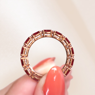 This exclusive rose gold Vivienne OVL 5x3 ring is a true work of art! This ring is made of 14 Carat rose gold and is set with 5x3 mm oval ruby. The smallest ornaments are crafted by our goldsmith with a lot of patience and great passion. In order to create this ring with great precision, this craft requires a keen eye and a skillful hand. A challenge which ignites a fire in our expert goldsmiths. The exquisite ruby are set in a way that their unique qualities are strengthened. This gives the ring an even more glamorous appearance. The ring is unique by itself though, because of the natural birthstones we selected especially for this Vivienne OVL 5x3 ring. And by choosing the precious metal yourself, you create a unique ring. Customize your own eternityVivienne OVL 5x3 ring, which will then be created by our goldsmiths with great passion. Do you prefer a different option than is shown here in the rose gold Vivienne OVL 5x3 ring? Then our online tools offers various options. Feel free to ask us for help if you are unable to succeed. We are happy to answer your questions!After receiving your order, our goldsmiths will passionately start the creative process of making your ring in our own studio. Because we don't have a big stockpile, these costs will not be passed on to you. Our pricing is proof of that! We offer top quality jewels at lowest price, guaranteed.To make it easier for you, we offer a 30 day return policy. Check our terms and conditions.