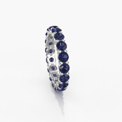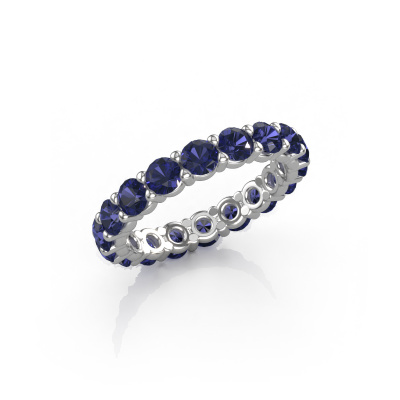This is our Heddy rnd 3.4 ring. This specific type is called an eternity ring and it is set with a continuous line of identically cut gemstones. The ring is made in 14 Carat white gold and is set with small sapphire, 3.4 mm. The amazing sapphire are identical in size and are set in the ring band. Our sapphire are selected with great care so they are identical, which gives the best result. In order to get the best result, our artisans position all sapphire by hand with the utmost care. Our Goldsmiths have one ambition, which is creating the perfect ring. That is why we love what we do. In the end you get a stunning modern white gold ring with a row of sapphire which seem to have no beginning nor end. The perfect symbol of your undying love for her! How special is that!After receiving your order, our goldsmiths will passionately start the creative process of making your ring in our own studio. Because we don't have a big stockpile, these costs will not be passed on to you. Our pricing is proof of that! We offer top quality jewels at lowest price, guaranteed.Our talented designers add new designs to our online collection daily. Together they create a diverse collection of the finest jewelry. If you prefer to make a ring according your own design, please feel free to request a quote. We will make you an amazing offer, based on quality and price.To make it easier for you, we offer a 30 day return policy. Check our terms and conditions.