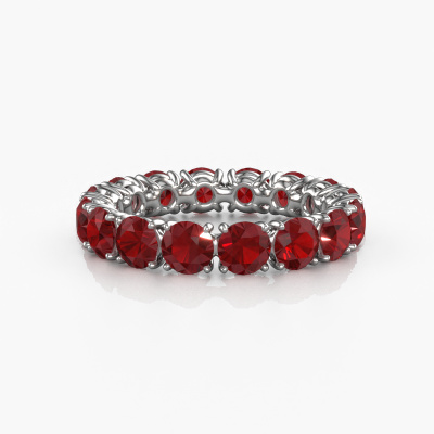 This Vivienne 4.0 stackable ring in 14 Carat white gold is set with ruby. This white gold stacked Vivienne 4.0 ring is the perfect addition to your ring collection! As the name suggests, it is a ring which can be combined on one finger with another ring. It gives you the opportunity to create your own style. A stacked ring usually represents a certain memory of someone special or a memorable moment. It is common to combine a stacked ring, representing an anniversary, with a wedding ring. But this eternity ring, combined with your other rings, also makes a classy fashion item. A customized modern stackable ring is the perfect gift! New exquisite designs are added daily by our team of passionate goldsmiths. And each design can be customized. Simply customize the precious metals and the color of gemstones which will be used, for example. This makes your design of the modern Vivienne 4.0 stackable ring truly unique!Because we design and deliver our own rings, we can offer you a ring at a price you won't find anywhere else. A ring is made to order, which helps prevent excess supplies, so we can make you a great price offer. We understand it feels risky, buying your ring online, but we will gladly assist in the designing process, taking your budget into consideration.To make it easier for you, we offer a 30 day return policy. Check our terms and conditions.