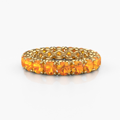 This is our Estee 3.7 ring. This specific type is called an eternity ring and it is set with a continuous line of identically cut gemstones. The ring is made in 14 Carat gold and is set with small citrin, 3.7 mm. The amazing citrin are identical in size and are set in the ring band. Our citrin are selected with great care so they are identical, which gives the best result. In order to get the best result, our artisans position all citrin by hand with the utmost care. Our Goldsmiths have one ambition, which is creating the perfect ring. That is why we love what we do. In the end you get a stunning classic gold stackable ring with a row of citrin which seem to have no beginning nor end. The perfect symbol of your undying love for her! How special is that!After receiving your order, our goldsmiths will passionately start the creative process of making your ring in our own studio. Because we don't have a big stockpile, these costs will not be passed on to you. Our pricing is proof of that! We offer top quality jewels at lowest price, guaranteed.Our talented designers add new designs to our online collection daily. Together they create a diverse collection of the finest jewelry. If you prefer to make a ring according your own design, please feel free to request a quote. We will make you an amazing offer, based on quality and price.To make it easier for you, we offer a 30 day return policy. Check our terms and conditions.