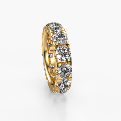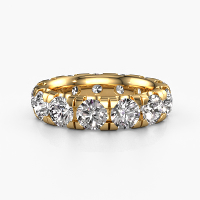 This is our Jackie 5.0 ring. This specific type is called an eternity ring and it is set with a continuous line of identically cut gemstones. The ring is made in 14 Carat gold and is set with small lab grown diamonds, 6.50 crt. The amazing lab grown diamonds are identical in size and are set in the ring band. Our lab grown diamonds are selected with great care so they are identical, which gives the best result. In order to get the best result, our artisans position all lab grown diamonds by hand with the utmost care. Our Goldsmiths have one ambition, which is creating the perfect ring. That is why we love what we do. In the end you get a stunning exclusive gold stackable ring with a row of lab grown diamonds which seem to have no beginning nor end. The perfect symbol of your undying love for her! How special is that!After receiving your order, our goldsmiths will passionately start the creative process of making your ring in our own studio. Because we don't have a big stockpile, these costs will not be passed on to you. Our pricing is proof of that! We offer top quality jewels at lowest price, guaranteed.Our talented designers add new designs to our online collection daily. Together they create a diverse collection of the finest jewelry. If you prefer to make a ring according your own design, please feel free to request a quote. We will make you an amazing offer, based on quality and price.To make it easier for you, we offer a 30 day return policy. Check our terms and conditions.