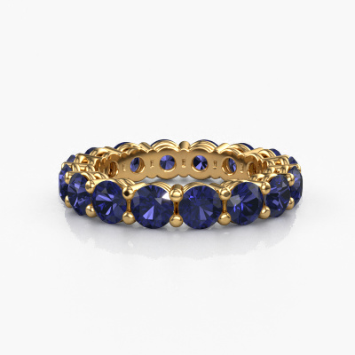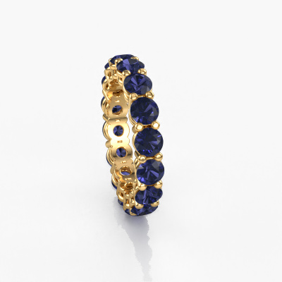 This is our Michelle full 4.0 ring. This specific type is called an eternity ring and it is set with a continuous line of identically cut gemstones. The ring is made in 14 Carat gold and is set with small sapphire, 4 mm. The amazing sapphire are identical in size and are set in the ring band. Our sapphire are selected with great care so they are identical, which gives the best result. In order to get the best result, our artisans position all sapphire by hand with the utmost care. Our Goldsmiths have one ambition, which is creating the perfect ring. That is why we love what we do. In the end you get a stunning modern gold stackable ring with a row of sapphire which seem to have no beginning nor end. The perfect symbol of your undying love for her! How special is that!By using a combination of the latest modern techniques, combined with ancient crafting, we can make all our rings in our own studio. Each jewel is made to order. This is advantageous because we can offer you a price you won't find anywhere else.Our talented designers add new designs to our online collection daily. Together they create a diverse collection of the finest jewelry. If you prefer to make a ring according your own design, please feel free to request a quote. We will make you an amazing offer, based on quality and price.To make it easier for you, we offer a 30 day return policy. Check our terms and conditions.