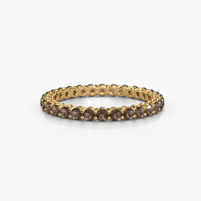 This is our Michelle full 2.0 ring. This specific type is called an eternity ring and it is set with a continuous line of identically cut gemstones. The ring is made in 14 Carat gold and is set with small smokey quartz, 2 mm. The amazing smokey quartz are identical in size and are set in the ring band. Our smokey quartz are selected with great care so they are identical, which gives the best result. In order to get the best result, our artisans position all smokey quartz by hand with the utmost care. Our Goldsmiths have one ambition, which is creating the perfect ring. That is why we love what we do. In the end you get a stunning classic gold stackable ring with a row of smokey quartz which seem to have no beginning nor end. The perfect symbol of your undying love for her! How special is that!By using a combination of the latest modern techniques, combined with ancient crafting, we can make all our rings in our own studio. Each jewel is made to order. This is advantageous because we can offer you a price you won't find anywhere else.New jewelry designs are added to our online collection daily. Our team of passionate designers strive to create extraordinary and diverse designs. Have you seen a ring you like? Please feel free to contact us. Based on a good price/ quality ratio, we will make you an offer you can't refuse!To make it easier for you, we offer a 30 day return policy. Check our terms and conditions.