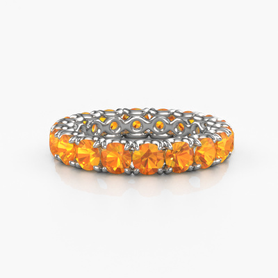 This is our Estee 3.7 ring. This specific type is called an eternity ring and it is set with a continuous line of identically cut gemstones. The ring is made in 14 Carat white gold and is set with small citrin, 3.7 mm. The amazing citrin are identical in size and are set in the ring band. Our citrin are selected with great care so they are identical, which gives the best result. In order to get the best result, our artisans position all citrin by hand with the utmost care. Our Goldsmiths have one ambition, which is creating the perfect ring. That is why we love what we do. In the end you get a stunning classic white gold stackable ring with a row of citrin which seem to have no beginning nor end. The perfect symbol of your undying love for her! How special is that!After receiving your order, our goldsmiths will passionately start the creative process of making your ring in our own studio. Because we don't have a big stockpile, these costs will not be passed on to you. Our pricing is proof of that! We offer top quality jewels at lowest price, guaranteed.Our talented designers add new designs to our online collection daily. Together they create a diverse collection of the finest jewelry. If you prefer to make a ring according your own design, please feel free to request a quote. We will make you an amazing offer, based on quality and price.To make it easier for you, we offer a 30 day return policy. Check our terms and conditions.
