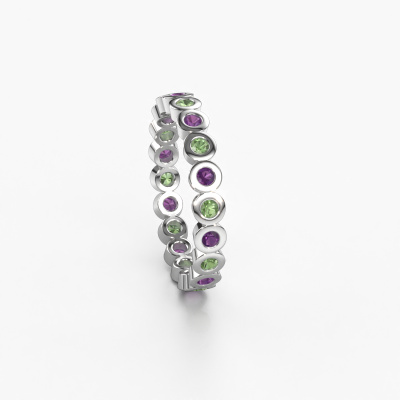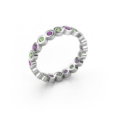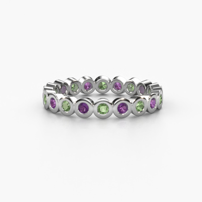 This is our Edwina 1 ring. This specific type is called an eternity ring and it is set with a continuous line of identically cut gemstones. The ring is made in 14 Carat white gold and is set with small tourmaline green, 2 mm. This white gold Eternity ring is a perfectly beautiful and meaningful way to give your proposal that special touch. The magnificent evenly shaped tourmaline green are pave set around the ring. The identical tourmaline green are carefully selected to give the ring a maximum effect. Do keep in mind we use natural resources so small differences between stones are common. The special effect is enhanced due to precise positioning of the tourmaline green. This requires the utmost precision and a skillful hand but for our skilled artisans this is what excites them. The result is a stackable ring with a row of tourmaline green which seem to have no beginning nor end. The perfect symbol of your love for her! Isn't she a beauty?By using our modern techniques, we can design and customize the finest quality jewels with the utmost care for you. Our rings are always priced 30 percent lower than other jewelers. We make rings to order, so we don't have to maintain a large stock. If you have a certain budget, we are more than happy to advice you accordingly.New jewelry designs are added to our online collection daily. Our team of passionate designers strive to create extraordinary and diverse designs. Have you seen a ring you like? Please feel free to contact us. Based on a good price/ quality ratio, we will make you an offer you can't refuse!To make it easier for you, we offer a 30 day return policy. Check our terms and conditions.