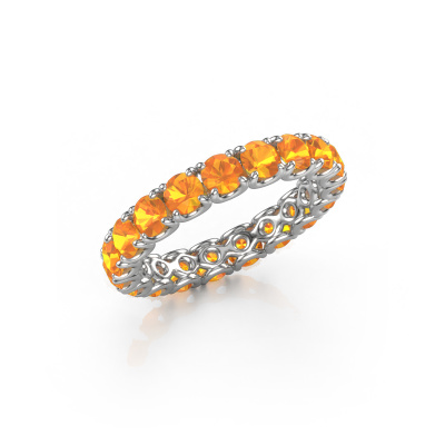 This is our Estee 3.4 ring. This specific type is called an eternity ring and it is set with a continuous line of identically cut gemstones. The ring is made in 14 Carat white gold and is set with small citrin, 3.4 mm. The amazing citrin are identical in size and are set in the ring band. Our citrin are selected with great care so they are identical, which gives the best result. In order to get the best result, our artisans position all citrin by hand with the utmost care. Our Goldsmiths have one ambition, which is creating the perfect ring. That is why we love what we do. In the end you get a stunning modern white gold stackable ring with a row of citrin which seem to have no beginning nor end. The perfect symbol of your undying love for her! How special is that!By using a combination of the latest modern techniques, combined with ancient crafting, we can make all our rings in our own studio. Each jewel is made to order. This is advantageous because we can offer you a price you won't find anywhere else.