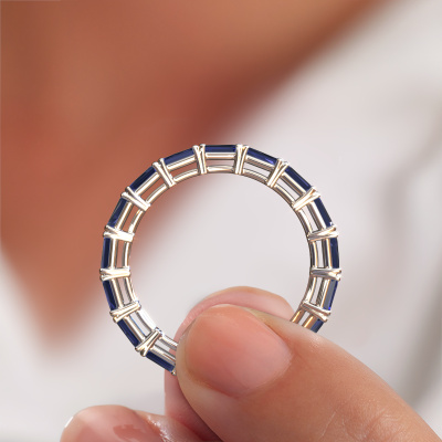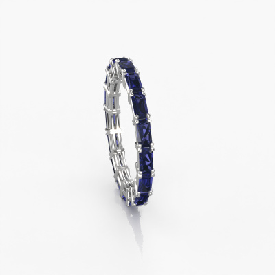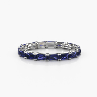 This is our Vivienne EME 4x2 ring. This specific type is called an eternity ring and it is set with a continuous line of identically cut gemstones. The ring is made in 14 Carat white gold and is set with small sapphire, 4x2 mm. The amazing sapphire are identical in size and are set in the ring band. Our sapphire are selected with great care so they are identical, which gives the best result. In order to get the best result, our artisans position all sapphire by hand with the utmost care. Our Goldsmiths have one ambition, which is creating the perfect ring. That is why we love what we do. In the end you get a stunning modern white gold stackable ring with a row of sapphire which seem to have no beginning nor end. The perfect symbol of your undying love for her! How special is that!By using our modern techniques, we can design and customize the finest quality jewels with the utmost care for you. Our rings are always priced 30 percent lower than other jewelers. We make rings to order, so we don't have to maintain a large stock. If you have a certain budget, we are more than happy to advice you accordingly.New jewelry designs are added to our online collection daily. Our team of passionate designers strive to create extraordinary and diverse designs. Have you seen a ring you like? Please feel free to contact us. Based on a good price/ quality ratio, we will make you an offer you can't refuse!To make it easier for you, we offer a 30 day return policy. Check our terms and conditions.
