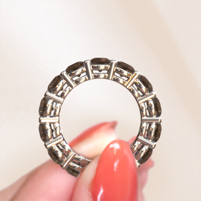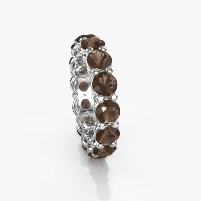 This is our Michelle full 4.7 ring. This specific type is called an eternity ring and it is set with a continuous line of identically cut gemstones. The ring is made in 14 Carat white gold and is set with small smokey quartz, 4.7 mm. The amazing smokey quartz are identical in size and are set in the ring band. Our smokey quartz are selected with great care so they are identical, which gives the best result. In order to get the best result, our artisans position all smokey quartz by hand with the utmost care. Our Goldsmiths have one ambition, which is creating the perfect ring. That is why we love what we do. In the end you get a stunning exclusive white gold stackable ring with a row of smokey quartz which seem to have no beginning nor end. The perfect symbol of your undying love for her! How special is that!Because we design and deliver our own rings, we can offer you a ring at a price you won't find anywhere else. A ring is made to order, which helps prevent excess supplies, so we can make you a great price offer. We understand it feels risky, buying your ring online, but we will gladly assist in the designing process, taking your budget into consideration.Our team of talented, passionate designers add new ring designs to our online collection daily. Our objective in doing so, is to be able to offer you a wide variety of jewels. Please feel free to request a quote if you have specific wishes for your ring. We guarantee to make you an offer you can't refuse.To make it easier for you, we offer a 30 day return policy. Check our terms and conditions.