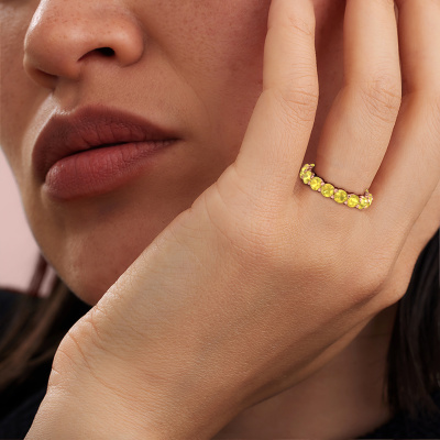 This Heddy rnd 4.0 stackable ring in 14 Carat rose gold is set with yellow sapphire. This rose gold stacked Heddy rnd 4.0 ring is the perfect addition to your ring collection! As the name suggests, it is a ring which can be combined on one finger with another ring. It gives you the opportunity to create your own style. A stacked ring usually represents a certain memory of someone special or a memorable moment. It is common to combine a stacked ring, representing an anniversary, with a wedding ring. But this eternity ring, combined with your other rings, also makes a classy fashion item. How do you like this exclusive rose gold stackable ring? Simply customize this Heddy rnd 4.0 stackable ring, using our online tool. Subsequently, your personal eternity Heddy rnd 4.0 stackable ring will be made by hand by our goldsmiths. Precious metals and gemstones can be customized to your liking. Do you have specific preferences which are unavailable in our online tool? Please feel free to contact us. We will customize your personal exclusive stackable ring to your liking.Are you on a budget? Please feel free to contact us, so we can go discuss your options. We offer our rings at guaranteed best price, because we make them to order. You won't find such a price anywhere else!To make it easier for you, we offer a 30 day return policy. Check our terms and conditions.