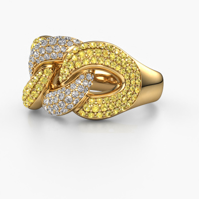 How would you describe your own style? Are you looking for something uniquely different? This wide gold Kylie 3 13mm ring is astonishing! Simply customize to your or her own liking. This ring is set with yellow sapphire. These yellow sapphire have been carefully selected because your ring must be adorned with nothing but the most beautiful gemstone. Wouldn't you agree? Our expert goldsmith will create your ring in our own crafting studios, where the yellow sapphire will be set with care. The ring will then be polished to perfection to give it that extra sparkle. It's a perfect ring for a woman of excellent taste!Customize your own wideKylie 3 13mm ring, which will then be created by our goldsmiths with great passion. Do you prefer a different option than is shown here in the gold Kylie 3 13mm ring? Then our online tools offers various options. Feel free to ask us for help if you are unable to succeed. We are happy to answer your questions!Because we design and deliver our own rings, we can offer you a ring at a price you won't find anywhere else. A ring is made to order, which helps prevent excess supplies, so we can make you a great price offer. We understand it feels risky, buying your ring online, but we will gladly assist in the designing process, taking your budget into consideration.To make it easier for you, we offer a 30 day return policy. Check our terms and conditions.