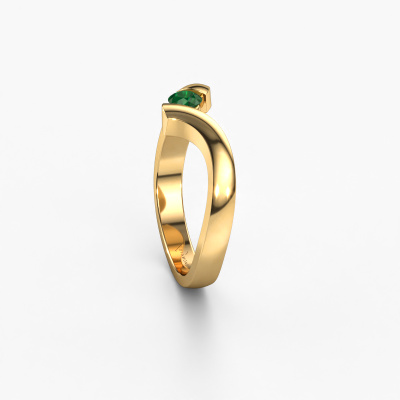This ring called Arda is made of 14 Carat gold and is set with emerald. Are you in the market for a unique gold ring with a modern twist? Then this ring might suit you. Simply customize to your or her liking. It suits the contemporary modern woman. This fantasy ring is set with beautiful emerald. This has been carefully selected. Because your ring must be adorned with nothing but the most stunning gemstone. Our expert goldsmith will create your ring in our own studio, where the emerald will be set with great care. The ring will then be polished to perfection to create a stunning ring. After receiving your order, our goldsmiths will start the creative process of making your Arda ring. We don't keep stock. This is advantageous because these costs will not be passed on to you. Therefore, we can offer jewelry at exceptionally low prices.New jewelry designs are added to our online collection daily. Our team of passionate designers strive to create extraordinary and diverse designs. Have you seen a ring you like? Please feel free to contact us. Based on a good price/ quality ratio, we will make you an offer you can't refuse!To make it easier for you, we offer a 30 day return policy. Check our terms and conditions.