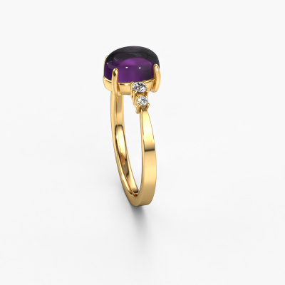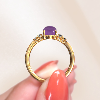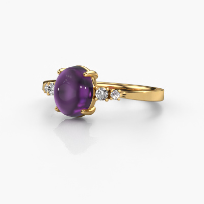 In this photo the gold Jelke ring is set with a cabochon amethyst. Cabochon means a amethyst is shaped first, not faceted, into a specific shape, such as a drop, heart or oval cabochon. Subsequently, it is polished until the gemstone has a orb shaped surface. A cabochon gemstone is a stunning, classy eye-catcher that matches perfectly with a contemporary as well as a vintage style. Our expert goldsmiths shape the daring ring to perfection which makes it unique. The cabochon amethyst is set so its unique qualities are strengthened. Customize your own daringJelke ring, which will then be created by our goldsmiths with great passion. Do you prefer a different option than is shown here in the gold Jelke ring? Then our online tools offers various options. Feel free to ask us for help if you are unable to succeed. We are happy to answer your questions!By using our modern techniques, we can design and customize the finest quality jewels with the utmost care for you. Our rings are always priced 30 percent lower than other jewelers. We make rings to order, so we don't have to maintain a large stock. If you have a certain budget, we are more than happy to advice you accordingly.To make it easier for you, we offer a 30 day return policy. Check our terms and conditions.