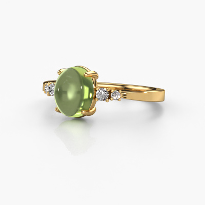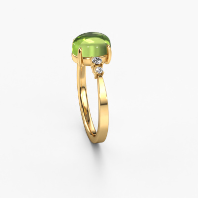 In this photo the gold Jelke ring is set with a cabochon peridot. Cabochon means a peridot is shaped first, not faceted, into a specific shape, such as a drop, heart or oval cabochon. Subsequently, it is polished until the gemstone has a orb shaped surface. A cabochon gemstone is a stunning, classy eye-catcher that matches perfectly with a contemporary as well as a vintage style. Our expert goldsmiths shape the daring ring to perfection which makes it unique. The cabochon peridot is set so its unique qualities are strengthened. Customize your own daringJelke ring, which will then be created by our goldsmiths with great passion. Do you prefer a different option than is shown here in the gold Jelke ring? Then our online tools offers various options. Feel free to ask us for help if you are unable to succeed. We are happy to answer your questions!By using our modern techniques, we can design and customize the finest quality jewels with the utmost care for you. Our rings are always priced 30 percent lower than other jewelers. We make rings to order, so we don't have to maintain a large stock. If you have a certain budget, we are more than happy to advice you accordingly.To make it easier for you, we offer a 30 day return policy. Check our terms and conditions.