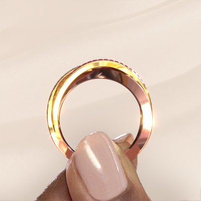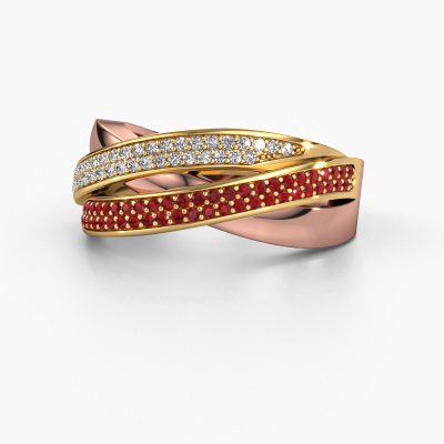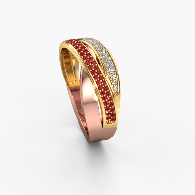 This ring called Myra is made of 14 Carat rose gold and is set with ruby. Are you in the market for a unique rose gold ring with a modern twist? Then this ring might suit you. Simply customize to your or her liking. It suits the contemporary modern woman. This fantasy ring is set with beautiful ruby. This has been carefully selected. Because your ring must be adorned with nothing but the most stunning gemstone. Our expert goldsmith will create your ring in our own studio, where the ruby will be set with great care. The ring will then be polished to perfection to create a stunning ring. After receiving your order, our goldsmiths will start the creative process of making your Myra ring. We don't keep stock. This is advantageous because these costs will not be passed on to you. Therefore, we can offer jewelry at exceptionally low prices.Our talented designers add new designs to our online collection daily. Together they create a diverse collection of the finest jewelry. If you prefer to make a ring according your own design, please feel free to request a quote. We will make you an amazing offer, based on quality and price.To make it easier for you, we offer a 30 day return policy. Check our terms and conditions.