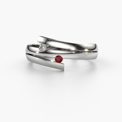 This ring called Dena is made of 14 Carat white gold and is set with ruby. Are you in the market for a unique white gold ring with a modern twist? Then this ring might suit you. Simply customize to your or her liking. It suits the contemporary modern woman. This fantasy ring is set with beautiful ruby. This has been carefully selected. Because your ring must be adorned with nothing but the most stunning gemstone. Our expert goldsmith will create your ring in our own studio, where the ruby will be set with great care. The ring will then be polished to perfection to create a stunning ring. After receiving your order, our goldsmiths will start the creative process of making your Dena ring. We don't keep stock. This is advantageous because these costs will not be passed on to you. Therefore, we can offer jewelry at exceptionally low prices.New jewelry designs are added to our online collection daily. Our team of passionate designers strive to create extraordinary and diverse designs. Have you seen a ring you like? Please feel free to contact us. Based on a good price/ quality ratio, we will make you an offer you can't refuse!To make it easier for you, we offer a 30 day return policy. Check our terms and conditions.