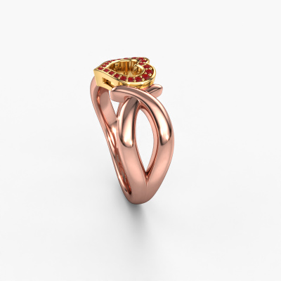 This symbolic rose gold Earlie 1 ring is set with ruby. For some, a ring is nothing more than a beautiful fashion item but they can become a meaningful keepsake. A ring such as this can be worn daily and it matches numerous different styles. Designing your own unique ring, makes it even more special. You are reminded of its uniqueness every time you look at it. Perhaps it reminds you of someone special. It might bring back memories. Unforgettable moments, represented in one ring. The beauty of it all is that the used precious metals and gemstones will last a lifetime. A lifetime of memories deserves nothing less! As soon as you finished designing your Earlie 1 ring with our online tool, our goldsmiths will start their creative process of making your ring. This will be done with passion and care, according ancient crafting. On top of that, our jewels are made of eco-friendly materials. Simply customize online with our online tool, if you want any changes made. If you want specific changes made to your Earlie 1 ring, that are unavailable in our online tool, please feel free to contact our expert designers.By using a combination of the latest modern techniques, combined with ancient crafting, we can make all our rings in our own studio. Each jewel is made to order. This is advantageous because we can offer you a price you won't find anywhere else.To make it easier for you, we offer a 30 day return policy. Check our terms and conditions.