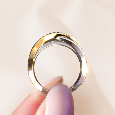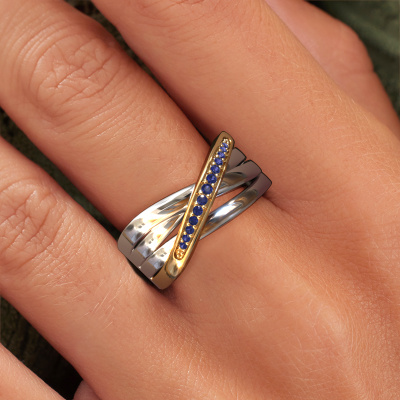 How would you describe your own style? Are you looking for something uniquely different? This split band white gold Renna 2 ring is astonishing! Simply customize to your or her own liking. This ring is set with sapphire. These sapphire have been carefully selected because your ring must be adorned with nothing but the most beautiful gemstone. Wouldn't you agree? Our expert goldsmith will create your ring in our own crafting studios, where the sapphire will be set with care. The ring will then be polished to perfection to give it that extra sparkle. It's a perfect ring for a woman of excellent taste!Our goldsmiths passionately create your customized ring to your liking with the utmost care. The white gold ring, as shown here, can be customized using our online tool. Feel free to ask our jewel designers for assistance if you want changes made which are unavailable in our online tool. We are happy to answer your questions.Are you on a budget? Please feel free to contact us, so we can go discuss your options. We offer our rings at guaranteed best price, because we make them to order. You won't find such a price anywhere else!To make it easier for you, we offer a 30 day return policy. Check our terms and conditions.
