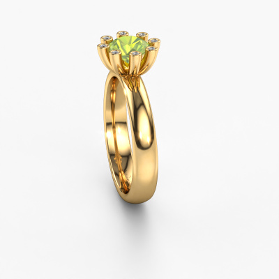Stacked rings are the perfect addition to your ring collection. They are very popular! This 14 Carat gold ring with round peridot can be combined with other stacked rings or a ring you currently own. A stacked ring is a perfect reminder of a memorable moment or a loved one. Stack the milestones in your life and let the rings do the talking. This fashionable ring is called Carola 3. It was designed by our own expert goldsmiths and we still make it by hand in our own artisan studio. Simply customize to your liking!As soon as you finished designing your Carola 3 ring with our online tool, our goldsmiths will start their creative process of making your ring. This will be done with passion and care, according ancient crafting. On top of that, our jewels are made of eco-friendly materials. Simply customize online with our online tool, if you want any changes made. If you want specific changes made to your Carola 3 ring, that are unavailable in our online tool, please feel free to contact our expert designers.Because we design and deliver our own rings, we can offer you a ring at a price you won't find anywhere else. A ring is made to order, which helps prevent excess supplies, so we can make you a great price offer. We understand it feels risky, buying your ring online, but we will gladly assist in the designing process, taking your budget into consideration.To make it easier for you, we offer a 30 day return policy. Check our terms and conditions.