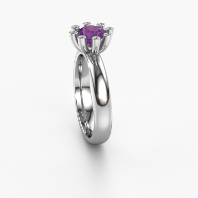 Stacked rings are the perfect addition to your ring collection. They are very popular! This platinum ring with round amethyst can be combined with other stacked rings or a ring you currently own. A stacked ring is a perfect reminder of a memorable moment or a loved one. Stack the milestones in your life and let the rings do the talking. This fashionable ring is called Carola 3. It was designed by our own expert goldsmiths and we still make it by hand in our own artisan studio. Simply customize to your liking!As soon as you finished designing your Carola 3 ring with our online tool, our goldsmiths will start their creative process of making your ring. This will be done with passion and care, according ancient crafting. On top of that, our jewels are made of eco-friendly materials. Simply customize online with our online tool, if you want any changes made. If you want specific changes made to your Carola 3 ring, that are unavailable in our online tool, please feel free to contact our expert designers.Because we design and deliver our own rings, we can offer you a ring at a price you won't find anywhere else. A ring is made to order, which helps prevent excess supplies, so we can make you a great price offer. We understand it feels risky, buying your ring online, but we will gladly assist in the designing process, taking your budget into consideration.To make it easier for you, we offer a 30 day return policy. Check our terms and conditions.