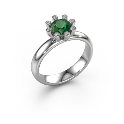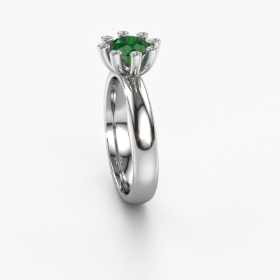 Stacked rings are the perfect addition to your ring collection. They are very popular! This platinum ring with round emerald can be combined with other stacked rings or a ring you currently own. A stacked ring is a perfect reminder of a memorable moment or a loved one. Stack the milestones in your life and let the rings do the talking. This fashionable ring is called Carola 3. It was designed by our own expert goldsmiths and we still make it by hand in our own artisan studio. Simply customize to your liking!As soon as you finished designing your Carola 3 ring with our online tool, our goldsmiths will start their creative process of making your ring. This will be done with passion and care, according ancient crafting. On top of that, our jewels are made of eco-friendly materials. Simply customize online with our online tool, if you want any changes made. If you want specific changes made to your Carola 3 ring, that are unavailable in our online tool, please feel free to contact our expert designers.Because we design and deliver our own rings, we can offer you a ring at a price you won't find anywhere else. A ring is made to order, which helps prevent excess supplies, so we can make you a great price offer. We understand it feels risky, buying your ring online, but we will gladly assist in the designing process, taking your budget into consideration.To make it easier for you, we offer a 30 day return policy. Check our terms and conditions.
