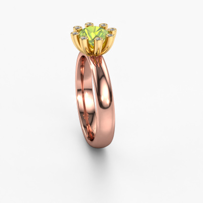 Stacked rings are the perfect addition to your ring collection. They are very popular! This 14 Carat rose gold ring with round peridot can be combined with other stacked rings or a ring you currently own. A stacked ring is a perfect reminder of a memorable moment or a loved one. Stack the milestones in your life and let the rings do the talking. This fashionable ring is called Carola 3. It was designed by our own expert goldsmiths and we still make it by hand in our own artisan studio. Simply customize to your liking!As soon as you finished designing your Carola 3 ring with our online tool, our goldsmiths will start their creative process of making your ring. This will be done with passion and care, according ancient crafting. On top of that, our jewels are made of eco-friendly materials. Simply customize online with our online tool, if you want any changes made. If you want specific changes made to your Carola 3 ring, that are unavailable in our online tool, please feel free to contact our expert designers.Because we design and deliver our own rings, we can offer you a ring at a price you won't find anywhere else. A ring is made to order, which helps prevent excess supplies, so we can make you a great price offer. We understand it feels risky, buying your ring online, but we will gladly assist in the designing process, taking your budget into consideration.To make it easier for you, we offer a 30 day return policy. Check our terms and conditions.
