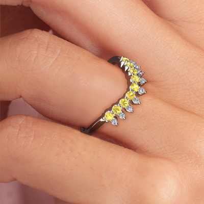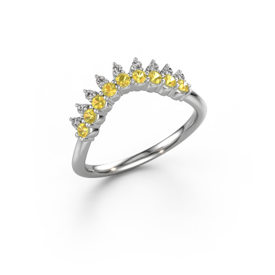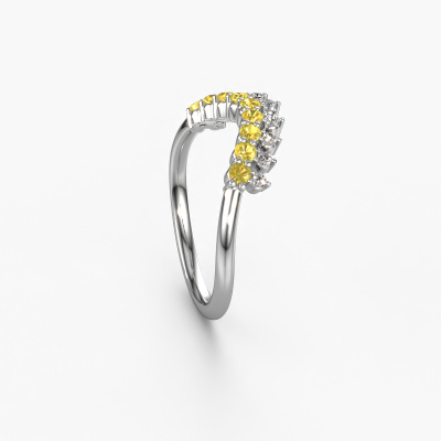 This Vivian B stackable ring in 14 Carat white gold is set with yellow sapphire. This white gold stacked Vivian B ring is the perfect addition to your ring collection! As the name suggests, it is a ring which can be combined on one finger with another ring. It gives you the opportunity to create your own style. A stacked ring usually represents a certain memory of someone special or a memorable moment. It is common to combine a stacked ring, representing an anniversary, with a wedding ring. But this fashionable ring, combined with your other rings, also makes a classy fashion item. Customize your own fashionableVivian B stackable ring, which will then be created by our goldsmiths with great passion. Do you prefer a different option than is shown here in the white gold Vivian B stackable ring? Then our online tools offers various options. Feel free to ask us for help if you are unable to succeed. We are happy to answer your questions!After receiving your order, our goldsmiths will start the creative process of making your Vivian B ring. We don't keep stock. This is advantageous because these costs will not be passed on to you. Therefore, we can offer jewelry at exceptionally low prices.To make it easier for you, we offer a 30 day return policy. Check our terms and conditions.