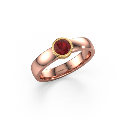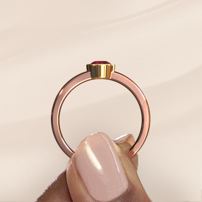 This ring called Ise 1 is made of 14 Carat rose gold and is set with ruby. Are you in the market for a unique rose gold ring with a modern twist? Then this ring might suit you. Simply customize to your or her liking. It suits the contemporary modern woman. This fine ring is set with beautiful ruby. This has been carefully selected. Because your ring must be adorned with nothing but the most stunning gemstone. Our expert goldsmith will create your ring in our own studio, where the ruby will be set with great care. The ring will then be polished to perfection to create a stunning ring. Are you on a budget? Please feel free to contact us, so we can go discuss your options. We offer our rings at guaranteed best price, because we make them to order. You won't find such a price anywhere else!