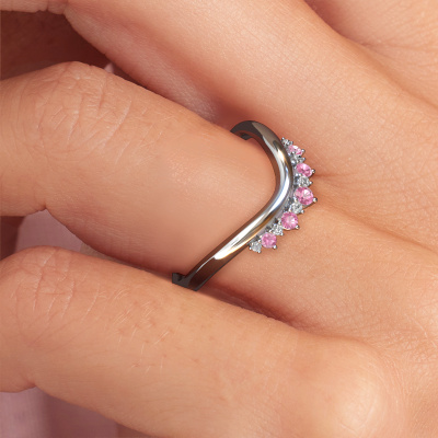 Stacked rings are the perfect addition to your ring collection. They are very popular! This 14 Carat white gold stackable ring with round pink sapphire can be combined with other stacked rings or a ring you currently own. A stacked ring is a perfect reminder of a memorable moment or a loved one. Stack the milestones in your life and let the rings do the talking. This fine stackable ring is called Lyla B. It was designed by our own expert goldsmiths and we still make it by hand in our own artisan studio. Simply customize to your liking!Customize your own fineLyla B stackable ring, which will then be created by our goldsmiths with great passion. Do you prefer a different option than is shown here in the white gold Lyla B stackable ring? Then our online tools offers various options. Feel free to ask us for help if you are unable to succeed. We are happy to answer your questions!After receiving your order, our goldsmiths will passionately start the creative process of making your ring in our own studio. Because we don't have a big stockpile, these costs will not be passed on to you. Our pricing is proof of that! We offer top quality jewels at lowest price, guaranteed.To make it easier for you, we offer a 30 day return policy. Check our terms and conditions.