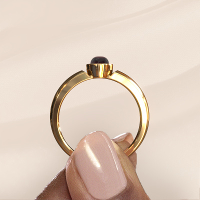 In this photo the gold Tonneke ring is set with a cabochon garnet. Cabochon means a garnet is shaped first, not faceted, into a specific shape, such as a drop, heart or oval cabochon. Subsequently, it is polished until the gemstone has a orb shaped surface. A cabochon gemstone is a stunning, classy eye-catcher that matches perfectly with a contemporary as well as a vintage style. Our expert goldsmiths shape the tasteful ring to perfection which makes it unique. The cabochon garnet is set so its unique qualities are strengthened. A customized modern ring is the perfect gift! New exquisite designs are added daily by our team of passionate goldsmiths. And each design can be customized. Simply customize the precious metals and the color of gemstones which will be used, for example. This makes your design of the modern Tonneke ring truly unique!Because we design and deliver our own rings, we can offer you a ring at a price you won't find anywhere else. A ring is made to order, which helps prevent excess supplies, so we can make you a great price offer. We understand it feels risky, buying your ring online, but we will gladly assist in the designing process, taking your budget into consideration.To make it easier for you, we offer a 30 day return policy. Check our terms and conditions.