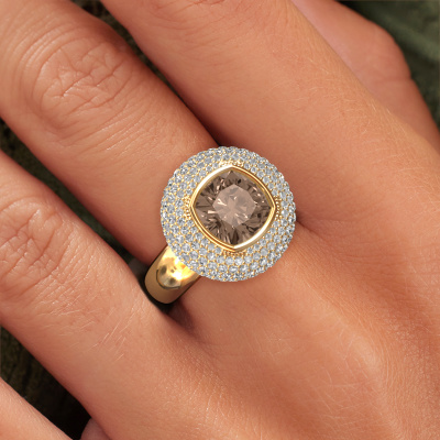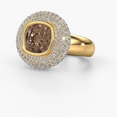 This exclusive gold Keshia ring is a true work of art! This ring is made of 14 Carat gold and is set with 3.803 crt cushion brown diamond. The smallest ornaments are crafted by our goldsmith with a lot of patience and great passion. In order to create this ring with great precision, this craft requires a keen eye and a skillful hand. A challenge which ignites a fire in our expert goldsmiths. The exquisite brown diamonds are set in a way that their unique qualities are strengthened. This gives the ring an even more glamorous appearance. The ring is unique by itself though, because of the natural birthstones we selected especially for this Keshia ring. And by choosing the precious metal yourself, you create a unique ring. Our goldsmiths passionately create your customized ring to your liking with the utmost care. The gold ring, as shown here, can be customized using our online tool. Feel free to ask our jewel designers for assistance if you want changes made which are unavailable in our online tool. We are happy to answer your questions.By using our modern techniques, we can design and customize the finest quality jewels with the utmost care for you. Our rings are always priced 30 percent lower than other jewelers. We make rings to order, so we don't have to maintain a large stock. If you have a certain budget, we are more than happy to advice you accordingly.To make it easier for you, we offer a 30 day return policy. Check our terms and conditions.