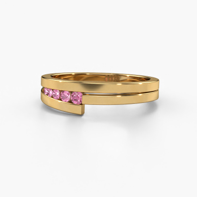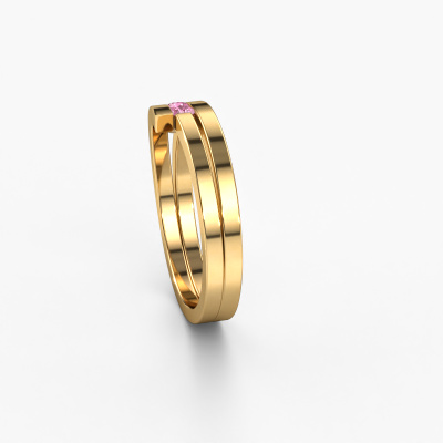 This ring is called Cato. It is made of 14 Carat gold and is set with 2.2 mm pink sapphire. Are you looking for a unique gold ring with a modern appearance? Then this is the ring for you. Simply customize to your or her liking. Perfect for a modern, contemporary woman! This elegant ring is adorned with stunning pink sapphire. It was carefully selected because your ring must be adorned with nothing but the most beautiful gemstones. Our expert goldsmith will create your ring in our own studio, where the pink sapphire will be set with great care. The ring will then be polished to perfection to create a beautiful ring. Because we design and deliver our own rings, we can offer you a ring at a price you won't find anywhere else. A ring is made to order, which helps prevent excess supplies, so we can make you a great price offer. We understand it feels risky, buying your ring online, but we will gladly assist in the designing process, taking your budget into consideration.Our talented designers add new designs to our online collection daily. Together they create a diverse collection of the finest jewelry. If you prefer to make a ring according your own design, please feel free to request a quote. We will make you an amazing offer, based on quality and price.To make it easier for you, we offer a 30 day return policy. Check our terms and conditions.