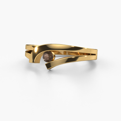 This ring is called Yentl. It is made of 14 Carat gold and is set with 3 mm smokey quartz. Are you looking for a unique gold ring with a modern appearance? Then this is the ring for you. Simply customize to your or her liking. Perfect for a modern, contemporary woman! This fantasy ring is adorned with stunning smokey quartz. It was carefully selected because your ring must be adorned with nothing but the most beautiful gemstones. Our expert goldsmith will create your ring in our own studio, where the smokey quartz will be set with great care. The ring will then be polished to perfection to create a beautiful ring. By using our modern techniques, we can design and customize the finest quality jewels with the utmost care for you. Our rings are always priced 30 percent lower than other jewelers. We make rings to order, so we don't have to maintain a large stock. If you have a certain budget, we are more than happy to advice you accordingly.Our team of talented, passionate designers add new ring designs to our online collection daily. Our objective in doing so, is to be able to offer you a wide variety of jewels. Please feel free to request a quote if you have specific wishes for your ring. We guarantee to make you an offer you can't refuse.To make it easier for you, we offer a 30 day return policy. Check our terms and conditions.