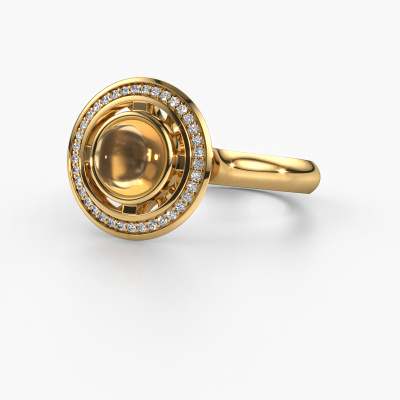 In this photo the gold Salima ring is set with a cabochon citrin. Cabochon means a citrin is shaped first, not faceted, into a specific shape, such as a drop, heart or round cabochon. Subsequently, it is polished until the gemstone has a orb shaped surface. A cabochon gemstone is a stunning, classy eye-catcher that matches perfectly with a contemporary as well as a vintage style. Our expert goldsmiths shape the special ring to perfection which makes it unique. The cabochon citrin is set so its unique qualities are strengthened. How do you like this design gold ring? Simply customize this Salima ring, using our online tool. Subsequently, your personal special Salima ring will be made by hand by our goldsmiths. Precious metals and gemstones can be customized to your liking. Do you have specific preferences which are unavailable in our online tool? Please feel free to contact us. We will customize your personal design ring to your liking.After receiving your order, our goldsmiths will passionately start the creative process of making your ring in our own studio. Because we don't have a big stockpile, these costs will not be passed on to you. Our pricing is proof of that! We offer top quality jewels at lowest price, guaranteed.To make it easier for you, we offer a 30 day return policy. Check our terms and conditions.