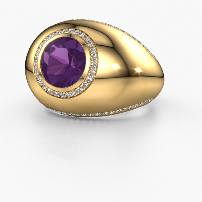 This is a stunning birthstones gold Roxann ring. It is set with amethyst. A designer ring, fit for classy women. The ring is designed by our own expert goldsmiths. In our artisan studio, we use a combination of the latest techniques and ancient