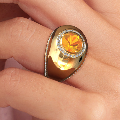 This is a stunning birthstones gold Roxann ring. It is set with citrin. A designer ring, fit for classy women. The ring is designed by our own expert goldsmiths. In our artisan studio, we use a combination of the latest techniques and ancient
