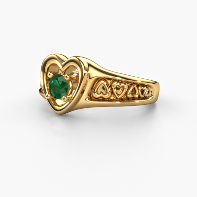 This symbolic gold Eura ring is set with emerald. For some, a ring is nothing more than a beautiful fashion item but they can become a meaningful keepsake. A ring such as this can be worn daily and it matches numerous different styles. Designing your own unique ring, makes it even more special. You are reminded of its uniqueness every time you look at it. Perhaps it reminds you of someone special. It might bring back memories. Unforgettable moments, represented in one ring. The beauty of it all is that the used precious metals and gemstones will last a lifetime. A lifetime of memories deserves nothing less! The best part of this symbolic ring is that you can customize it to your own liking. Your style, your choice, your ring. On top of that, your fantasy gold ring will be made by hand with eco-friendly materials! Please feel free to easily customize the ring, using our online tool.Because we design and deliver our own rings, we can offer you a ring at a price you won't find anywhere else. A ring is made to order, which helps prevent excess supplies, so we can make you a great price offer. We understand it feels risky, buying your ring online, but we will gladly assist in the designing process, taking your budget into consideration.To make it easier for you, we offer a 30 day return policy. Check our terms and conditions.