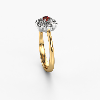 How would you describe your own style? Are you looking for something uniquely different? This cluster gold Uma ring is astonishing! Simply customize to your or her own liking. This ring is set with garnet. These garnet have been carefully selected because your ring must be adorned with nothing but the most beautiful gemstone. Wouldn't you agree? Our expert goldsmith will create your ring in our own crafting studios, where the garnet will be set with care. The ring will then be polished to perfection to give it that extra sparkle. It's a perfect ring for a woman of excellent taste!As soon as you finished designing your Uma ring with our online tool, our goldsmiths will start their creative process of making your ring. This will be done with passion and care, according ancient crafting. On top of that, our jewels are made of eco-friendly materials. Simply customize online with our online tool, if you want any changes made. If you want specific changes made to your Uma ring, that are unavailable in our online tool, please feel free to contact our expert designers.Are you on a budget? Please feel free to contact us, so we can go discuss your options. We offer our rings at guaranteed best price, because we make them to order. You won't find such a price anywhere else!To make it easier for you, we offer a 30 day return policy. Check our terms and conditions.