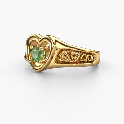 This symbolic gold Eura ring is set with tourmaline green. For some, a ring is nothing more than a beautiful fashion item but they can become a meaningful keepsake. A ring such as this can be worn daily and it matches numerous different styles. Designing your own unique ring, makes it even more special. You are reminded of its uniqueness every time you look at it. Perhaps it reminds you of someone special. It might bring back memories. Unforgettable moments, represented in one ring. The beauty of it all is that the used precious metals and gemstones will last a lifetime. A lifetime of memories deserves nothing less! The best part of this symbolic ring is that you can customize it to your own liking. Your style, your choice, your ring. On top of that, your fantasy gold ring will be made by hand with eco-friendly materials! Please feel free to easily customize the ring, using our online tool.Because we design and deliver our own rings, we can offer you a ring at a price you won't find anywhere else. A ring is made to order, which helps prevent excess supplies, so we can make you a great price offer. We understand it feels risky, buying your ring online, but we will gladly assist in the designing process, taking your budget into consideration.To make it easier for you, we offer a 30 day return policy. Check our terms and conditions.