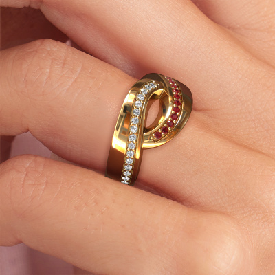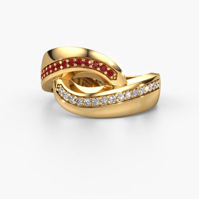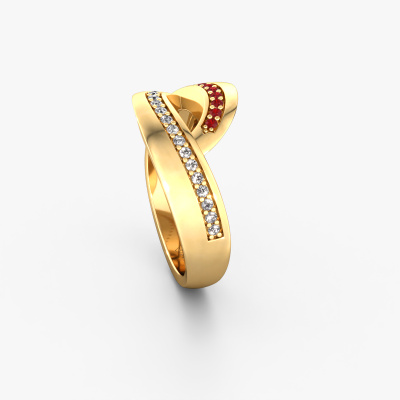 This exclusive gold Sharita ring is a true work of art! This ring is made of 14 Carat gold and is set with 1.2 mm round ruby. The smallest ornaments are crafted by our goldsmith with a lot of patience and great passion. In order to create this ring with great precision, this craft requires a keen eye and a skillful hand. A challenge which ignites a fire in our expert goldsmiths. The exquisite ruby are set in a way that their unique qualities are strengthened. This gives the ring an even more glamorous appearance. The ring is unique by itself though, because of the natural birthstones we selected especially for this Sharita ring. And by choosing the precious metal yourself, you create a unique ring. Our goldsmiths passionately create your customized ring to your liking with the utmost care. The gold ring, as shown here, can be customized using our online tool. Feel free to ask our jewel designers for assistance if you want changes made which are unavailable in our online tool. We are happy to answer your questions.After receiving your order, our goldsmiths will start the creative process of making your Sharita ring. We don't keep stock. This is advantageous because these costs will not be passed on to you. Therefore, we can offer jewelry at exceptionally low prices.To make it easier for you, we offer a 30 day return policy. Check our terms and conditions.