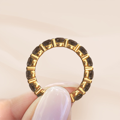 This exclusive gold Heddy rnd 4.2 ring is a true work of art! This ring is made of 14 Carat gold and is set with 4.2 mm round smokey quartz. The smallest ornaments are crafted by our goldsmith with a lot of patience and great passion. In order to create this ring with great precision, this craft requires a keen eye and a skillful hand. A challenge which ignites a fire in our expert goldsmiths. The exquisite smokey quartz are set in a way that their unique qualities are strengthened. This gives the ring an even more glamorous appearance. The ring is unique by itself though, because of the natural birthstones we selected especially for this Heddy rnd 4.2 ring. And by choosing the precious metal yourself, you create a unique ring. The best part of this eternity ring is that you can customize it to your own liking. Your style, your choice, your ring. On top of that, your exclusive gold ring will be made by hand with eco-friendly materials! Please feel free to easily customize the ring, using our online tool.After receiving your order, our goldsmiths will start the creative process of making your Heddy rnd 4.2 ring. We don't keep stock. This is advantageous because these costs will not be passed on to you. Therefore, we can offer jewelry at exceptionally low prices.To make it easier for you, we offer a 30 day return policy. Check our terms and conditions.
