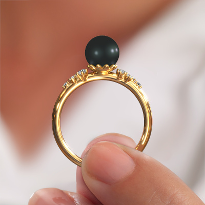 How would you describe your own style? Are you looking for something uniquely different? This graceful gold Royce PRL ring is astonishing! Simply customize to your or her own liking. This ring is set with black pearl. These black pearls have been carefully selected because your ring must be adorned with nothing but the most beautiful gemstone. Wouldn't you agree? Our expert goldsmith will create your ring in our own crafting studios, where the black pearl will be set with care. The ring will then be polished to perfection to give it that extra sparkle. It's a perfect ring for a woman of excellent taste!Our goldsmiths passionately create your customized ring to your liking with the utmost care. The gold ring, as shown here, can be customized using our online tool. Feel free to ask our jewel designers for assistance if you want changes made which are unavailable in our online tool. We are happy to answer your questions.Because we design and deliver our own rings, we can offer you a ring at a price you won't find anywhere else. A ring is made to order, which helps prevent excess supplies, so we can make you a great price offer. We understand it feels risky, buying your ring online, but we will gladly assist in the designing process, taking your budget into consideration.To make it easier for you, we offer a 30 day return policy. Check our terms and conditions.