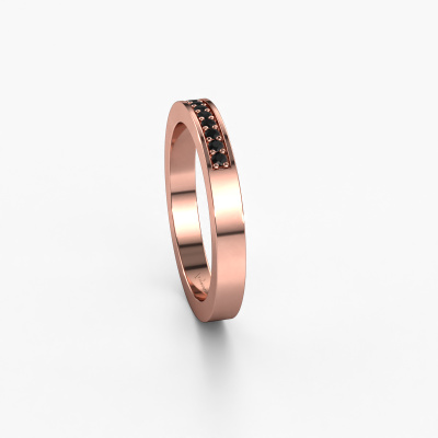 This Loes 3 stackable ring in 14 Carat rose gold is set with black diamond. This rose gold stacked Loes 3 ring is the perfect addition to your ring collection! As the name suggests, it is a ring which can be combined on one finger with another ring. It gives you the opportunity to create your own style. A stacked ring usually represents a certain memory of someone special or a memorable moment. It is common to combine a stacked ring, representing an anniversary, with a wedding ring. But this half eternity ring, combined with your other rings, also makes a classy fashion item. The best part of this half eternity stackable ring is that you can customize it to your own liking. Your style, your choice, your stackable ring. On top of that, your modern rose gold stackable ring will be made by hand with eco-friendly materials! Please feel free to easily customize the ring, using our online tool.After receiving your order, our goldsmiths will start the creative process of making your Loes 3 ring. We don't keep stock. This is advantageous because these costs will not be passed on to you. Therefore, we can offer jewelry at exceptionally low prices.To make it easier for you, we offer a 30 day return policy. Check our terms and conditions.