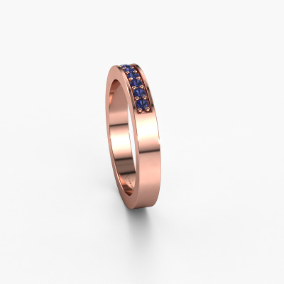 This ring called Loes 5 is made of 14 Carat rose gold and is set with sapphire. Are you in the market for a unique rose gold stackable ring with a modern twist? Then this ring might suit you. Simply customize to your or her liking. It suits the contemporary modern woman. This half eternity stackable ring is set with beautiful sapphire. This has been carefully selected. Because your stackable ring must be adorned with nothing but the most stunning gemstone. Our expert goldsmith will create your ring in our own studio, where the sapphire will be set with great care. The ring will then be polished to perfection to create a stunning ring. After receiving your order, our goldsmiths will start the creative process of making your Loes 5 ring. We don't keep stock. This is advantageous because these costs will not be passed on to you. Therefore, we can offer jewelry at exceptionally low prices.Our talented designers add new designs to our online collection daily. Together they create a diverse collection of the finest jewelry. If you prefer to make a ring according your own design, please feel free to request a quote. We will make you an amazing offer, based on quality and price.To make it easier for you, we offer a 30 day return policy. Check our terms and conditions.