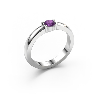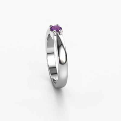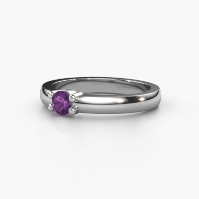 This extraordinary ring is called Yasmin 1. This type of ring is known as a memoire ring, because it's birthstones are set in a continuous line. This makes it easy to combine with other rings. The band of this platinum ring is set in a combination of amethyst and amethyst 4 mm. You can easily choose the combination you prefer online. As you can see, a single amethyst is set in this single alliance platinum ring. The memoire ring represents collaboration. And that is precisely what these gemstones do, collaborate. Together they add a beautiful effect to the band of a classic ring! Such a meaningful ring, wouldn't you agree? All of our hand selected amethysten are positioned by hand by our expert goldsmith. It's a precise task, which can only be completed successfully through the combination of pure craftsmanship and usage of the latest techniques which give it an optimal effect. To create a perfect reflection of light, all the gemstones have to be perfectly aligned in the same way. During manufacturing, the expert goldsmith will therefore monitor the reflection of light constantly to check whether the amethysten are aligned properly. This requires a skilled hand and a lot of patience but then the end product will be a true piece of art. And that is our mission!Because we design and deliver our own rings, we can offer you a ring at a price you won't find anywhere else. A ring is made to order, which helps prevent excess supplies, so we can make you a great price offer. We understand it feels risky, buying your ring online, but we will gladly assist in the designing process, taking your budget into consideration.Our team of talented, passionate designers add new ring designs to our online collection daily. Our objective in doing so, is to be able to offer you a wide variety of jewels. Please feel free to request a quote if you have specific wishes for your ring. We guarantee to make you an offer you can't refuse.To make it easier for you, we offer a 30 day return policy. Check our terms and conditions.