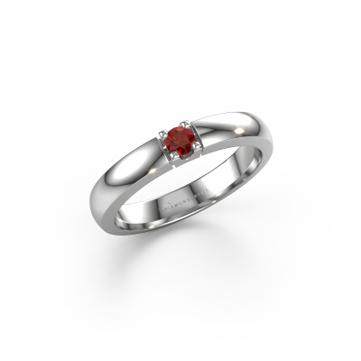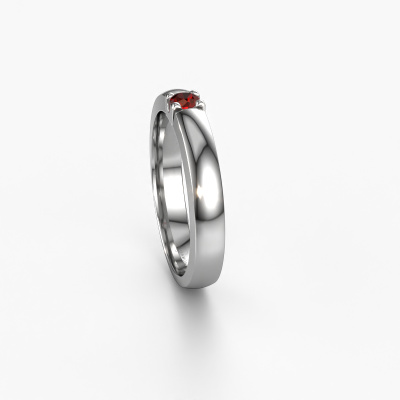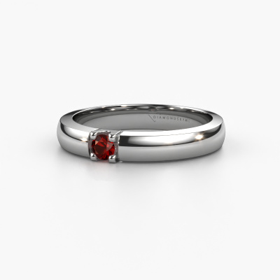 This extraordinary ring is called Rianne 1. This type of ring is known as a memoire ring, because it's birthstones are set in a continuous line. This makes it easy to combine with other rings. The band of this platinum ring is set in a combination of garnet and garnet 3 mm. You can easily choose the combination you prefer online. As you can see, a single garnet is set in this single alliance platinum ring. The memoire ring represents collaboration. And that is precisely what these gemstones do, collaborate. Together they add a beautiful effect to the band of a classic ring! Such a meaningful ring, wouldn't you agree? All of our hand selected garnet are positioned by hand by our expert goldsmith. It's a precise task, which can only be completed successfully through the combination of pure craftsmanship and usage of the latest techniques which give it an optimal effect. To create a perfect reflection of light, all the gemstones have to be perfectly aligned in the same way. During manufacturing, the expert goldsmith will therefore monitor the reflection of light constantly to check whether the garnet are aligned properly. This requires a skilled hand and a lot of patience but then the end product will be a true piece of art. And that is our mission!By using a combination of the latest modern techniques, combined with ancient crafting, we can make all our rings in our own studio. Each jewel is made to order. This is advantageous because we can offer you a price you won't find anywhere else.Our team of talented, passionate designers add new ring designs to our online collection daily. Our objective in doing so, is to be able to offer you a wide variety of jewels. Please feel free to request a quote if you have specific wishes for your ring. We guarantee to make you an offer you can't refuse.To make it easier for you, we offer a 30 day return policy. Check our terms and conditions.