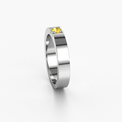 This extraordinary ring is called Dana 1. This type of ring is known as a memoire ring, because it's birthstones are set in a continuous line. This makes it easy to combine with other rings. The band of this platinum ring is set in a combination of yellow sapphire and yellow sapphire 3.7 mm. You can easily choose the combination you prefer online. As you can see, a single yellow sapphire is set in this single alliance platinum ring. The memoire ring represents collaboration. And that is precisely what these gemstones do, collaborate. Together they add a beautiful effect to the band of a modern ring! Such a meaningful ring, wouldn't you agree? All of our hand selected yellow sapphire are positioned by hand by our expert goldsmith. It's a precise task, which can only be completed successfully through the combination of pure craftsmanship and usage of the latest techniques which give it an optimal effect. To create a perfect reflection of light, all the gemstones have to be perfectly aligned in the same way. During manufacturing, the expert goldsmith will therefore monitor the reflection of light constantly to check whether the yellow sapphire are aligned properly. This requires a skilled hand and a lot of patience but then the end product will be a true piece of art. And that is our mission!After receiving your order, our goldsmiths will passionately start the creative process of making your ring in our own studio. Because we don't have a big stockpile, these costs will not be passed on to you. Our pricing is proof of that! We offer top quality jewels at lowest price, guaranteed.Our team of talented, passionate designers add new ring designs to our online collection daily. Our objective in doing so, is to be able to offer you a wide variety of jewels. Please feel free to request a quote if you have specific wishes for your ring. We guarantee to make you an offer you can't refuse.To make it easier for you, we offer a 30 day return policy. Check our terms and conditions.