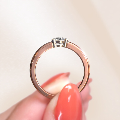 This extraordinary ring is called Michelle 1. This type of ring is known as a memoire ring, because it's birthstones are set in a continuous line. This makes it easy to combine with other rings. The band of this 14 Carat rose gold ring is set in a combination of diamond and diamond 0.30 crt. You can easily choose the combination you prefer online. As you can see, a single diamond is set in this single alliance rose gold ring. The memoire ring represents collaboration. And that is precisely what these gemstones do, collaborate. Together they add a beautiful effect to the band of a classic ring! Such a meaningful ring, wouldn't you agree? All of our hand selected diamonds are positioned by hand by our expert goldsmith. It's a precise task, which can only be completed successfully through the combination of pure craftsmanship and usage of the latest techniques which give it an optimal effect. To create a perfect reflection of light, all the gemstones have to be perfectly aligned in the same way. During manufacturing, the expert goldsmith will therefore monitor the reflection of light constantly to check whether the diamonds are aligned properly. This requires a skilled hand and a lot of patience but then the end product will be a true piece of art. And that is our mission!By using a combination of the latest modern techniques, combined with ancient crafting, we can make all our rings in our own studio. Each jewel is made to order. This is advantageous because we can offer you a price you won't find anywhere else.