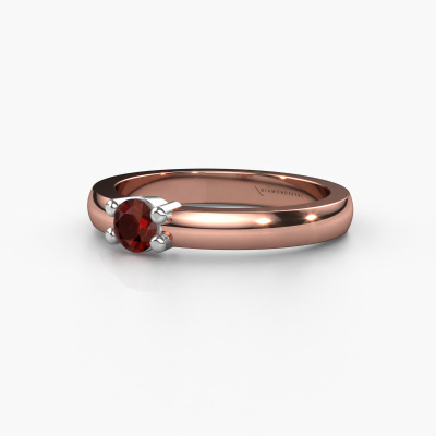This extraordinary ring is called Yasmin 1. This type of ring is known as a memoire ring, because it's birthstones are set in a continuous line. This makes it easy to combine with other rings. The band of this 14 Carat rose gold ring is set in a combination of garnet and garnet 4 mm. You can easily choose the combination you prefer online. As you can see, a single garnet is set in this single alliance rose gold ring. The memoire ring represents collaboration. And that is precisely what these gemstones do, collaborate. Together they add a beautiful effect to the band of a classic ring! Such a meaningful ring, wouldn't you agree? All of our hand selected garnet are positioned by hand by our expert goldsmith. It's a precise task, which can only be completed successfully through the combination of pure craftsmanship and usage of the latest techniques which give it an optimal effect. To create a perfect reflection of light, all the gemstones have to be perfectly aligned in the same way. During manufacturing, the expert goldsmith will therefore monitor the reflection of light constantly to check whether the garnet are aligned properly. This requires a skilled hand and a lot of patience but then the end product will be a true piece of art. And that is our mission!Because we design and deliver our own rings, we can offer you a ring at a price you won't find anywhere else. A ring is made to order, which helps prevent excess supplies, so we can make you a great price offer. We understand it feels risky, buying your ring online, but we will gladly assist in the designing process, taking your budget into consideration.Our team of talented, passionate designers add new ring designs to our online collection daily. Our objective in doing so, is to be able to offer you a wide variety of jewels. Please feel free to request a quote if you have specific wishes for your ring. We guarantee to make you an offer you can't refuse.To make it easier for you, we offer a 30 day return policy. Check our terms and conditions.