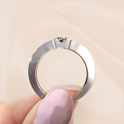 This extraordinary ring is called Dana 1. This type of ring is known as a memoire ring, because it's birthstones are set in a continuous line. This makes it easy to combine with other rings. The band of this 14 Carat white gold ring is set in a combination of diamond and diamond 0.40 crt. You can easily choose the combination you prefer online. As you can see, a single diamond is set in this single alliance white gold ring. The memoire ring represents collaboration. And that is precisely what these gemstones do, collaborate. Together they add a beautiful effect to the band of a modern ring! Such a meaningful ring, wouldn't you agree? All of our hand selected diamonds are positioned by hand by our expert goldsmith. It's a precise task, which can only be completed successfully through the combination of pure craftsmanship and usage of the latest techniques which give it an optimal effect. To create a perfect reflection of light, all the gemstones have to be perfectly aligned in the same way. During manufacturing, the expert goldsmith will therefore monitor the reflection of light constantly to check whether the diamonds are aligned properly. This requires a skilled hand and a lot of patience but then the end product will be a true piece of art. And that is our mission!After receiving your order, our goldsmiths will passionately start the creative process of making your ring in our own studio. Because we don't have a big stockpile, these costs will not be passed on to you. Our pricing is proof of that! We offer top quality jewels at lowest price, guaranteed.Our team of talented, passionate designers add new ring designs to our online collection daily. Our objective in doing so, is to be able to offer you a wide variety of jewels. Please feel free to request a quote if you have specific wishes for your ring. We guarantee to make you an offer you can't refuse.To make it easier for you, we offer a 30 day return policy. Check our terms and conditions.